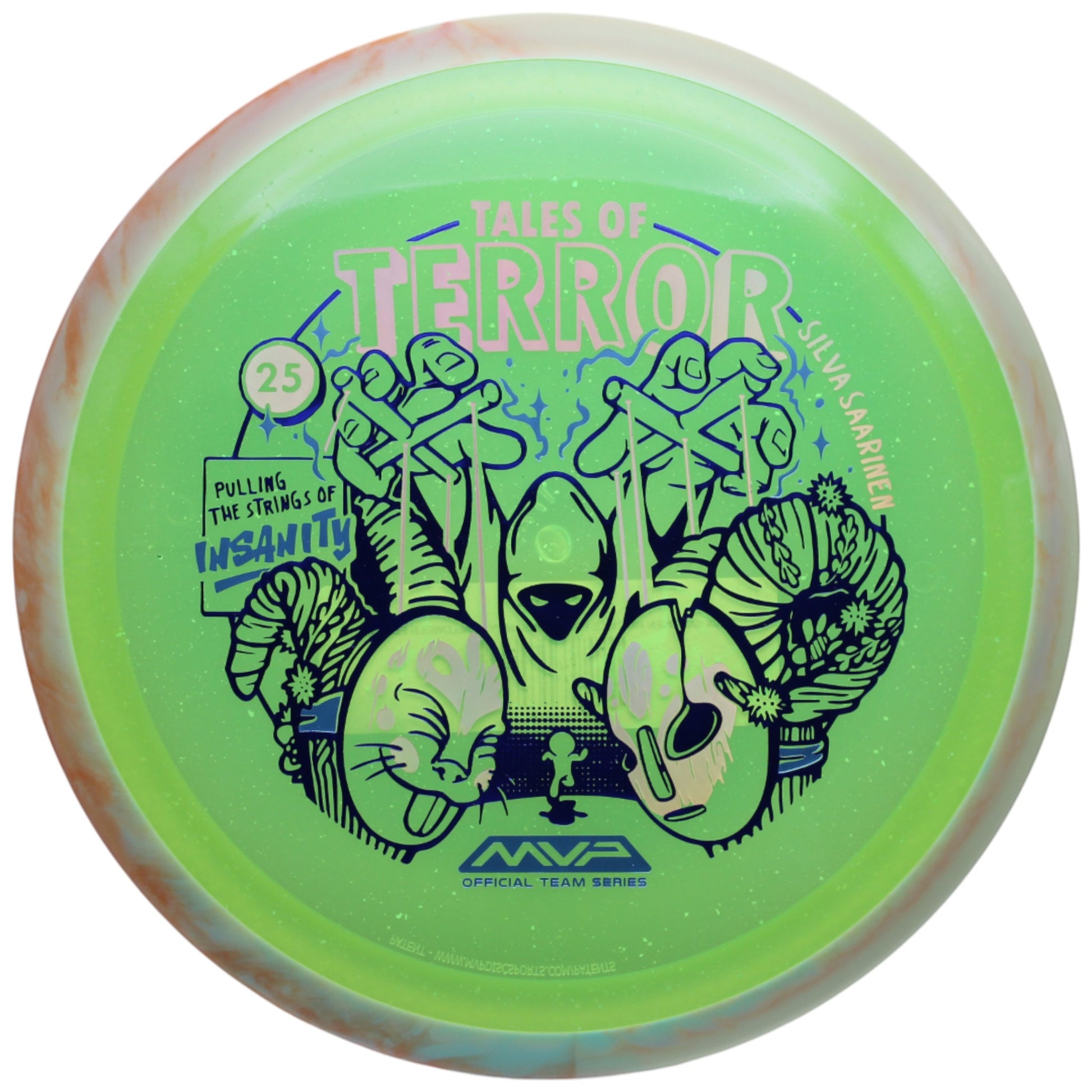 (9, 5, -2, 1.5) – A Particle Proton driver with a Halloween comic-inspired look by Damian White. It’s stable-understable, offering straight lines with subtle fade at average power, while delivering hyzer-flips, turnovers, and S-lines when thrown with force